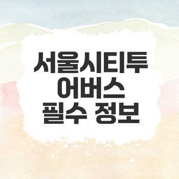 서울에서의 특별한 여행을 원하신다면 서울시티투어버스를 이용해 보세요. 다양한 코스를 통해 서울의 매력을 만끽할 수 있습니다.목차 서울시티투어버스 소개 타이거버스의 매력 주요 관광지 편리한 운행 방식 서울시티투어버스 코스 정보 도심고궁남산코스 야경코스 특징 다양한 옵션 소개 서울시티투어버스 시간표와 운행 운행시간 정리 탑승간격 안내 마지막 버스 시간 서울시티투어버스 예약 방법 온라인 예약 절차 현장 구매 방법 예약 시 유의사항 서울시티투어버스 이용 팁 편리한 탑승장소 자리 배정과 대기 추천 아이템 준비 서울시티투어버스 소개서울의 매력을 제대로 경험하려면 서울시티투어버스인 타이거버스를 선택하는 것이 좋습니다. 타이거버스는 관광객과 시민들이 서울의 주요 명소를 편리하게 탐방할..
